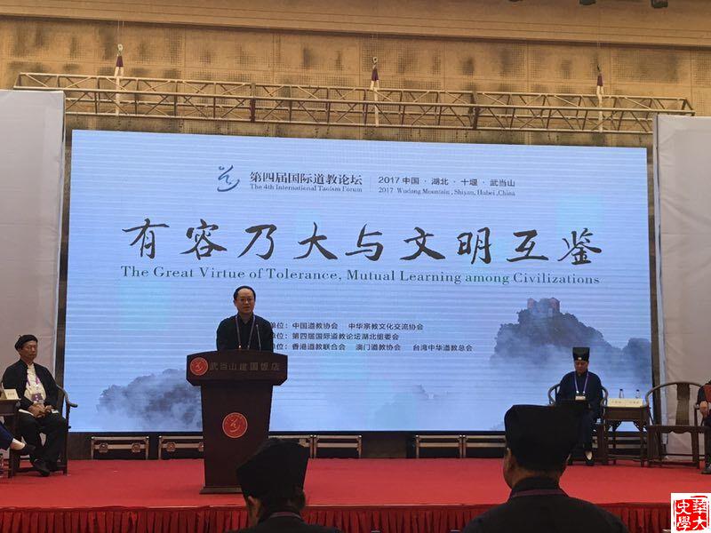 “道通天地、德贯古今”第四届国际道教论坛于5月10日至12日在湖北武当山举行,华中师范大学道家道教研究中心熊铁基、刘固盛、梅莉教授等应邀前往十堰武当山参加此次论坛。12日上午,“有容乃大与文明互鉴”分论坛在武当山建国饭店举行,刘固盛教授围绕论坛主题做了“《道德经》与文化自信”的演讲报告,表达了对中华文化的自信。