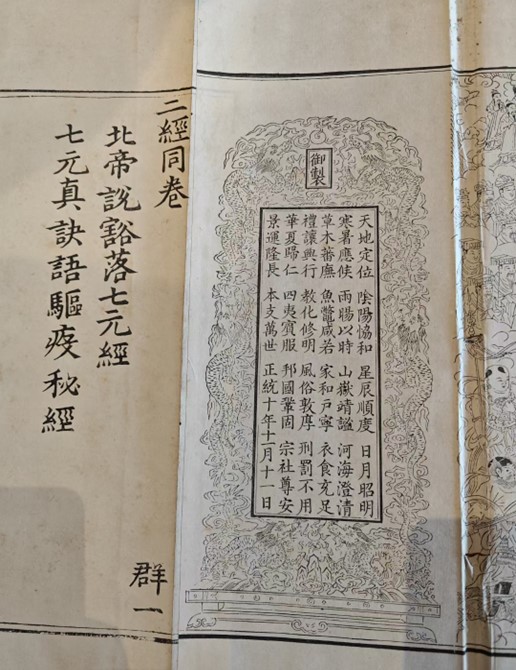 此外,在天字函和缨字函内部加盖有“揆叙图书” 印章,《度人经》末页上也印有“信官三宝弟子揆叙诚造”字样。这两则证据也为我们了解南阳这部康熙四十七年《道藏》的流传历史提供了若干难得的线索。揆叙(1675—1717),纳喇氏,字凯功, 号惟实居士, 满州正黄旗人,为康熙朝重臣明珠(1635-1708)第二子。揆叙或许在当年宫内道藏重修完成后,为自己特别请印了一部,留在家中供奉,为自己加持功德。