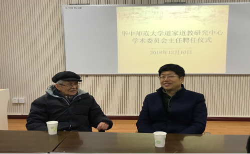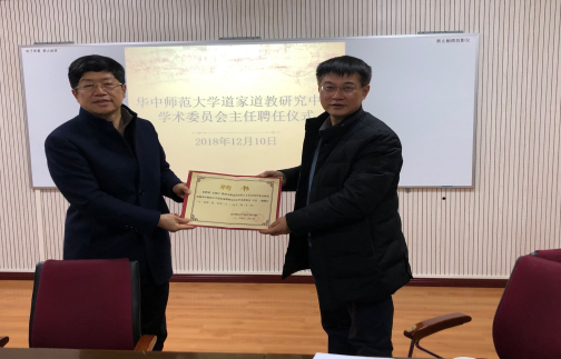 (通讯员 程翠英)12月10日上午,湖北省人文社会科学重点研究基地道家道教研究中心学术委员会主任聘任仪式在历史文化学院一号楼1208会议室举行,聘请四川大学道教与宗教文化研究所所长盖建民教授担任道家道教研究中心学术委员会主任。仪式由中心主任刘固盛教授主持,出席人员包括华中师范大学社科处刘中兴副处长、历史文化学院院长吴琦教授、副院长付海晏教授、中心创始人熊铁基教授以及中心的研究人员等。